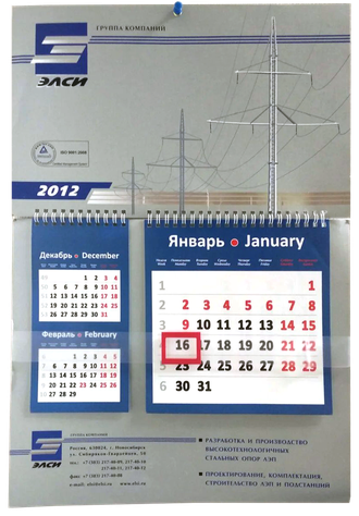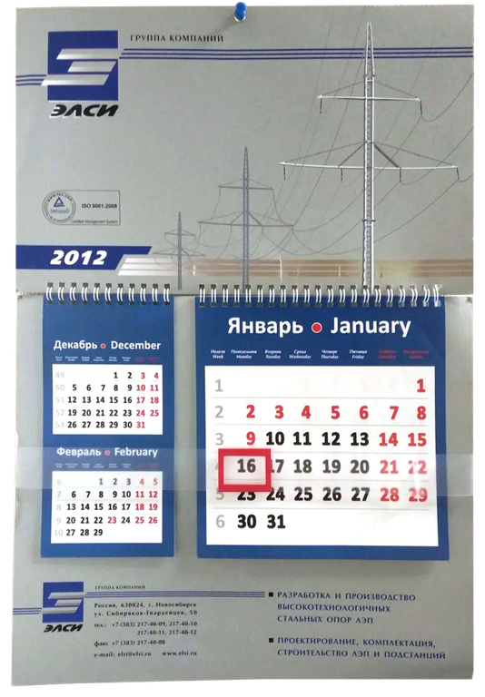 Стоимость указана при заказе 500 штук календарей.